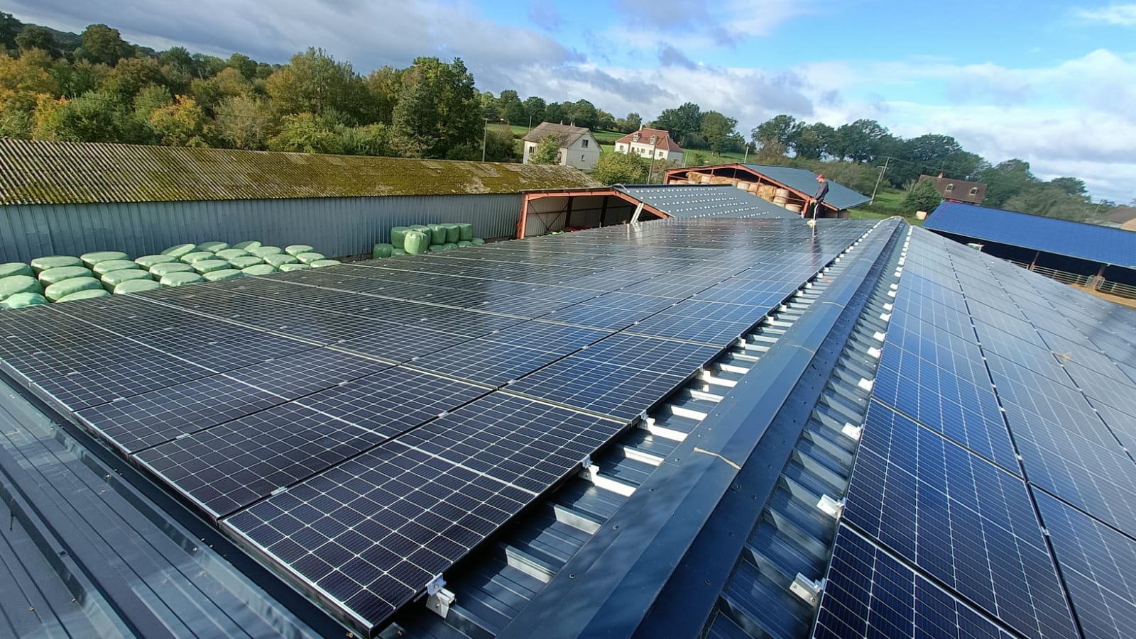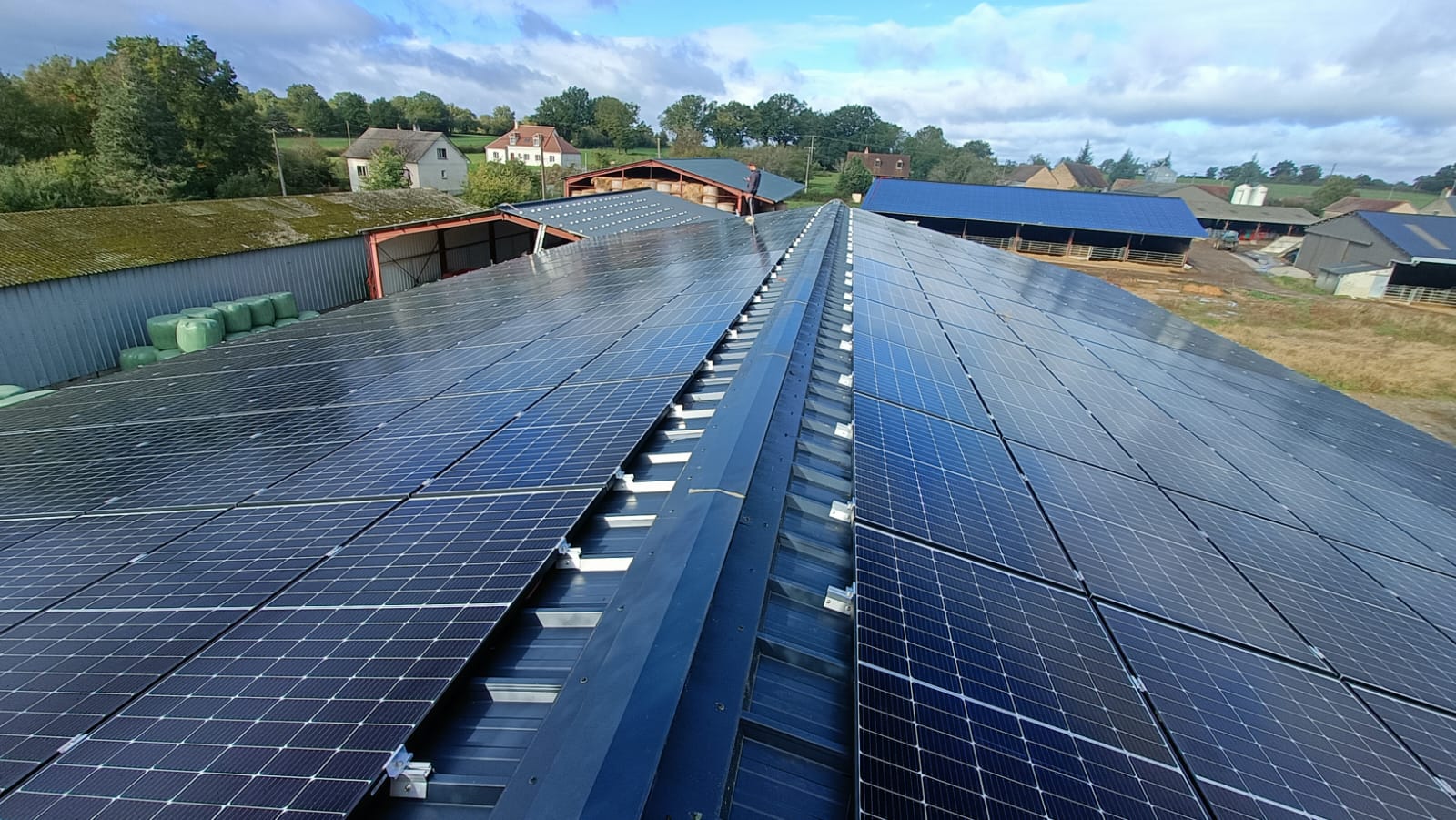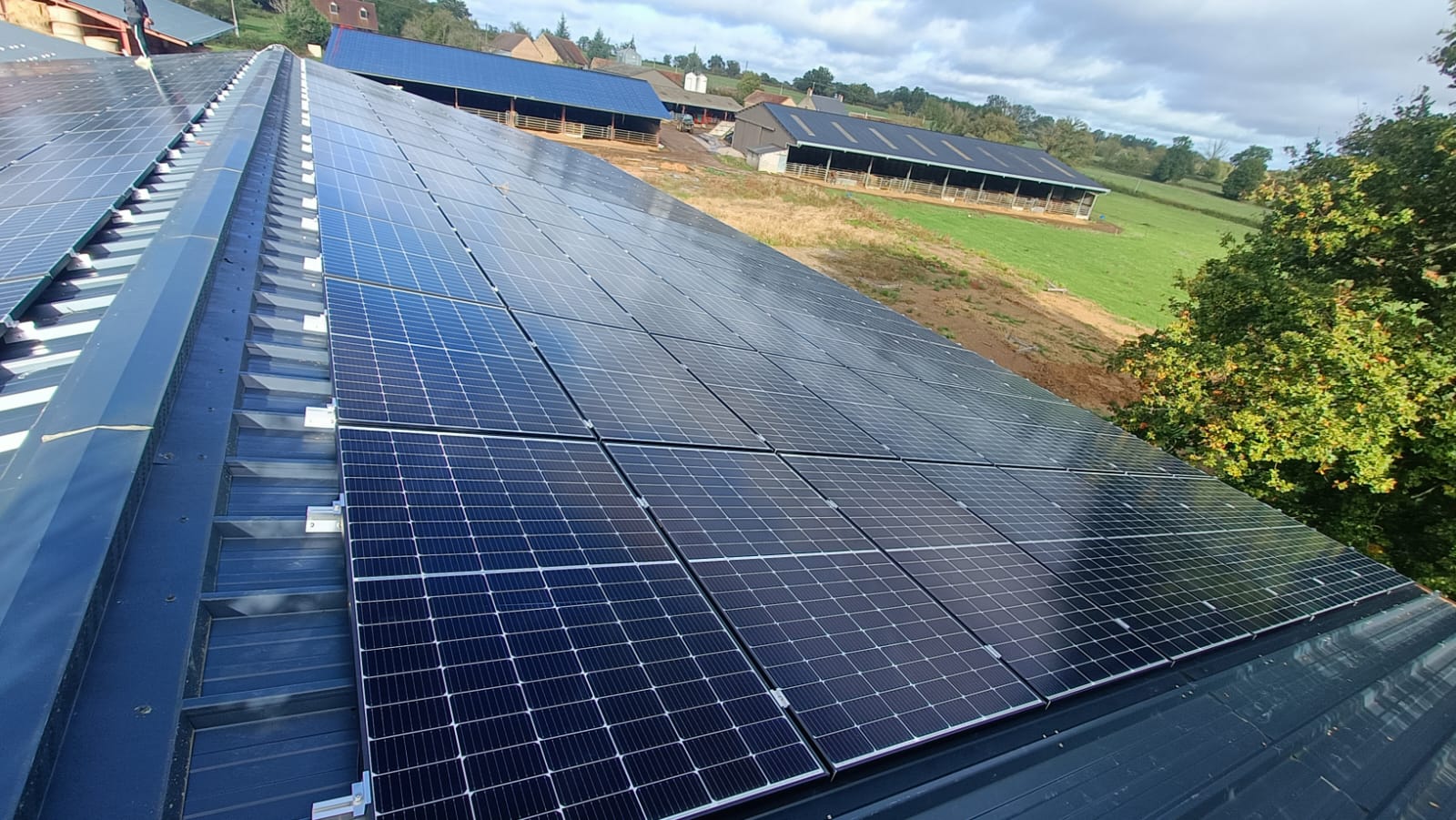 Stabulation agricole neuve et bâtiments existants équipés de panneaux LONGI SOLAR – Onduleurs Solis – Système de fixation Joris Ide OptiRoof. Contrat d’achat « S21 » en vente en totalité.