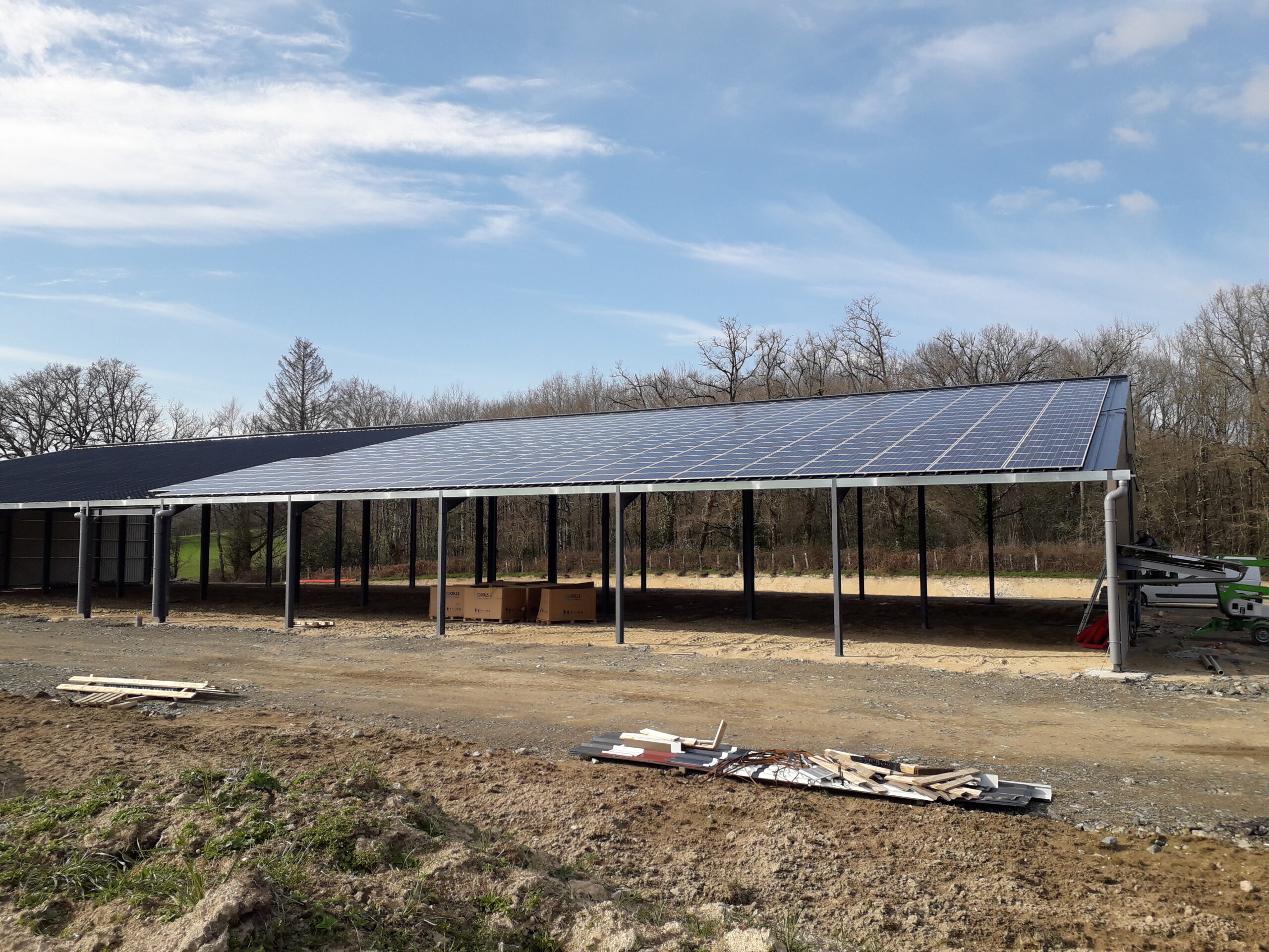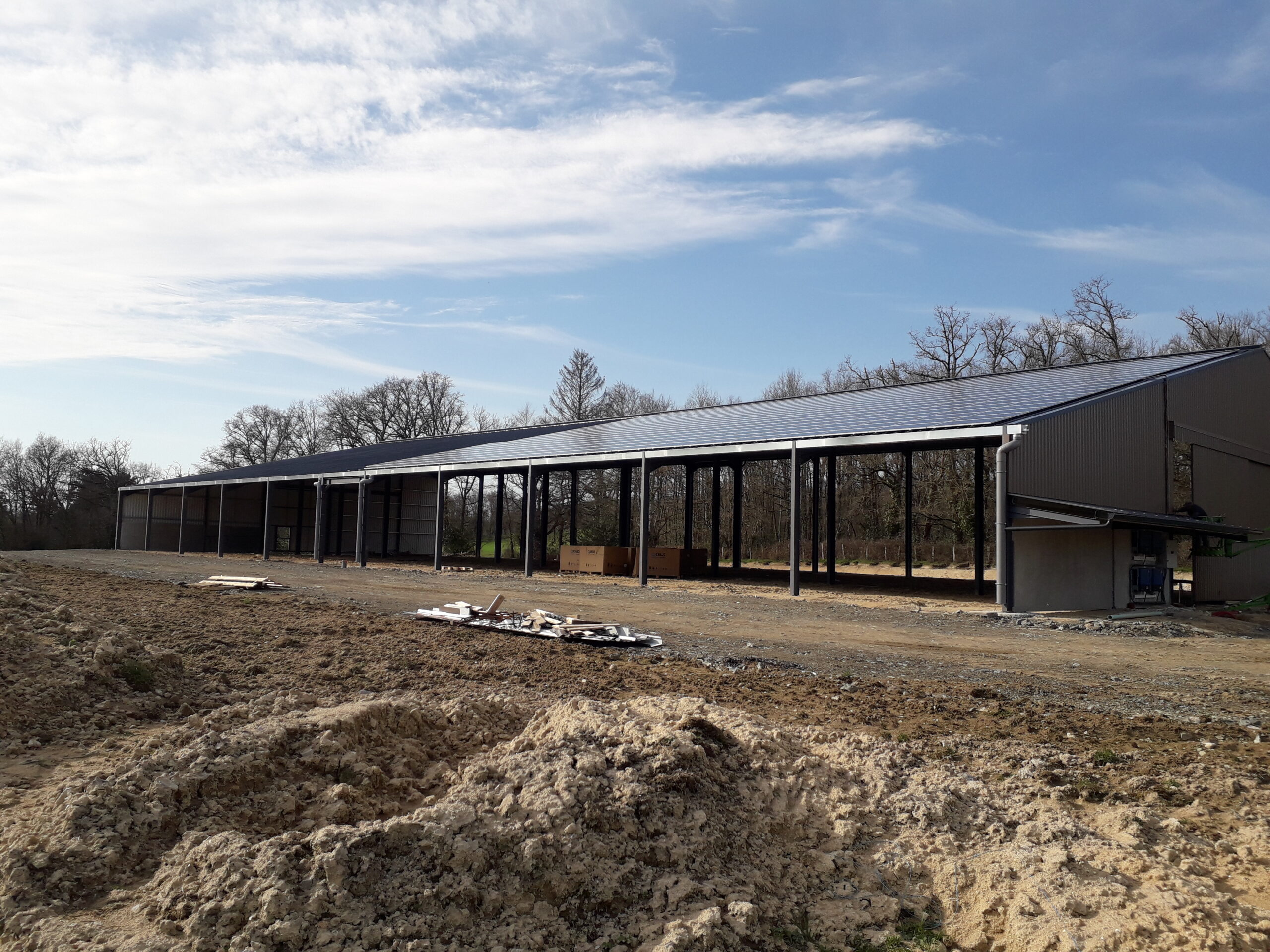 En Creuse (23) Bâtiment agricole neuf 2 x 100kWc Phase 1 des travaux